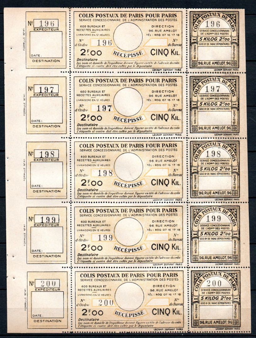 (…) En 1892, la loi change. En effet, en vertu de la loi du 10 avril 1892, le service des colis postaux est désormais fait au nom et sous le contrôle de l’Admnistration des Postes, par les réseaux de chemins de fer, les compagnies maritimes, par certains services d’autobus et par les courriers de la Poste. (…) Toutefois, le monopole ainsi accordé aux chemins de fer laissa subister la Compagnie des Colis Postaux de Paris pour Paris qui continua ses émissions.
