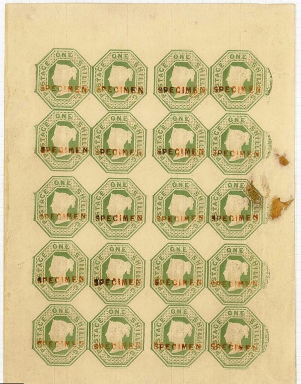Sans doute, les néo-calédoniens ne valent ni comme gravure ni comme prix les premiers Maurice. Et pourtant ceux-ci également ont été gravés par un amateur. Si Triquerat était sergent, J. Barnard était horloger. Vous connaissez l’histoire de la célèbre erreur et comment, à la vue de l’inscription Post Office sur le bureau de poste, il fut amené par distraction à la transporter sur le timbre qu’on l’avait chargé de graver. Ce Post-Office, comme d’ailleurs le Post Paid où seulement la mention fut changée est un très beau timbre. Non que le profil de la reine Victoria, accentué d’un solide prognathisme, ne nous paraisse un peu renfrogné. Mais quelle force dans le relief et quel velouté profond dans les ombres ! (…)