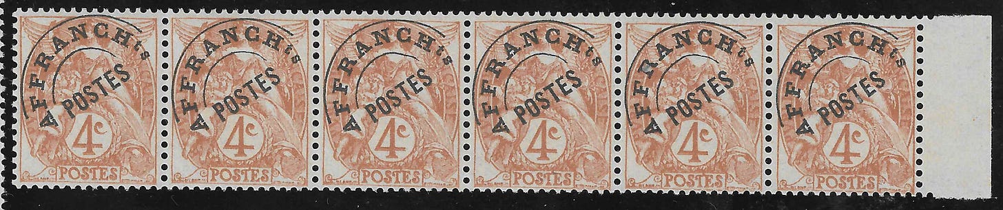 Autre particularité intéressante : les feuilles ordinaires comportent un interpanneau vertical, ce qui n’est pas le cas des roulettes. Résultat : il est possible d’obtenir des bandes horizontales de six timbres issues de roulettes - chose impossible avec les feuilles normales. Très peu de philatélistes y ont pensé à l’époque, ce qui explique leur rareté et la forte demande aujourd’hui.