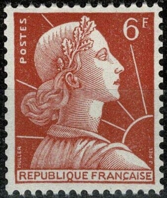 En 1955, la Poste franchit un cap en émettant un timbre réservé exclusivement aux roulettes : le 6 francs type Muller. C’est la seule figurine française dont l’origine en roulette est absolument certaine, puisqu’elle n’existe sous aucune autre forme.