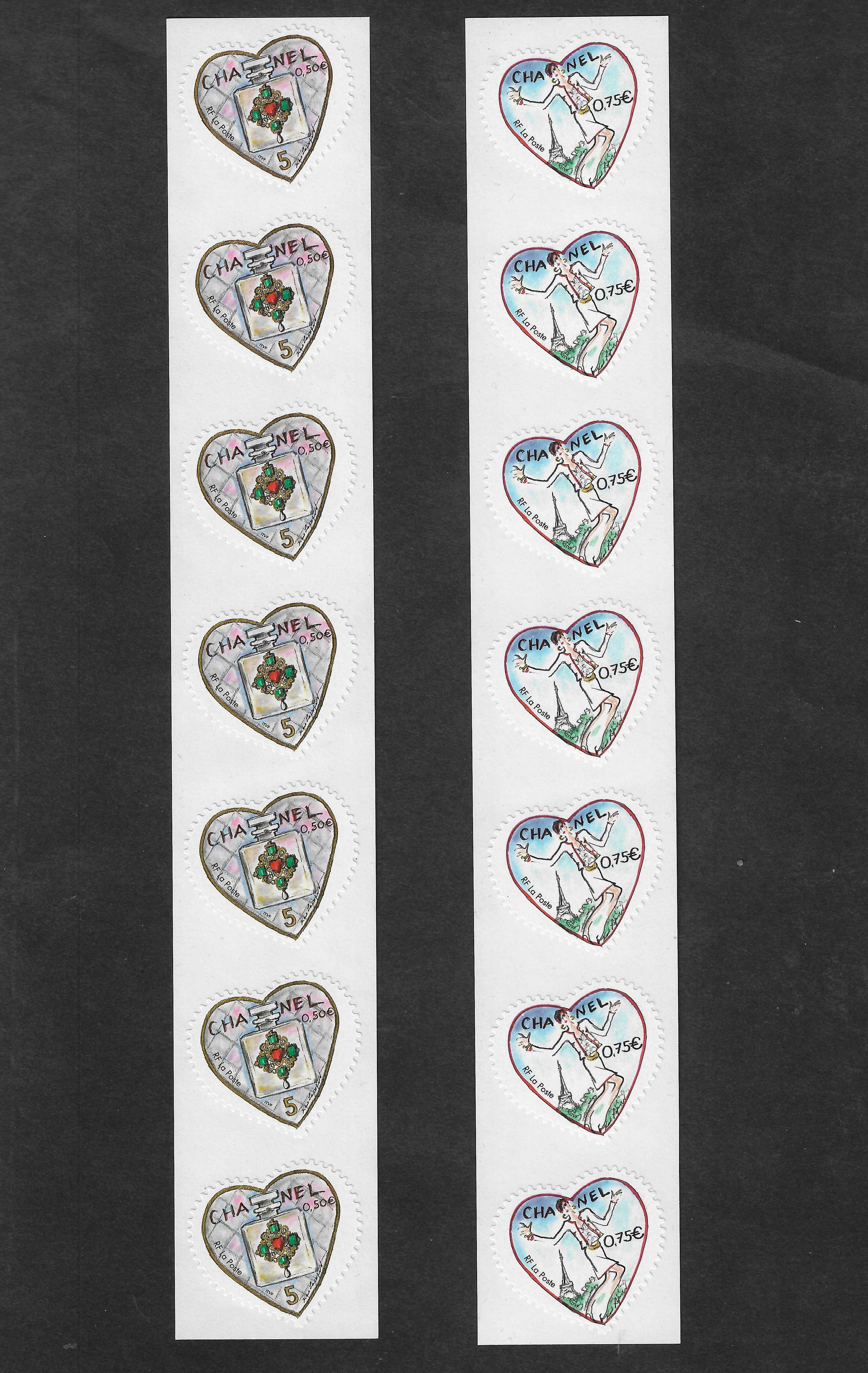 Dernière grande mutation en date : le passage à l’autoadhésif. En 2004, les deux Cœurs Chanel sont émis en roulettes autocollantes numérotées, dans un tirage très limité qui ne passe pas inaperçu auprès des collectionneurs.