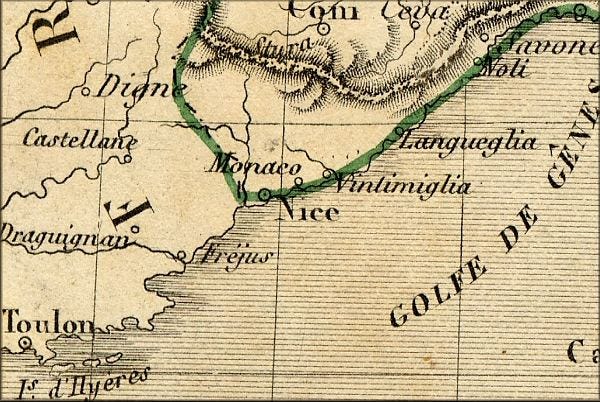“En 1860, la victorieuse campagne d’Italie que les armées de Napoléon III avaient menée contre l’Autriche à côté de leurs alliés sardes, se soldait pour la France par le rattachement de la Savoie et de l’arrondissement de Nice. C’est par le traité de Turin, signé le 24 mars 1860, que le roi Victor-Emmanuel II céda ces territoires à l’Empereur à la condition que les populations savoyardes et niçoises accepteraient librement ce changement de souveraineté. Un plébiscite eut lieu et la volonté populaire ratifia dûment le traité. En juillet 1860 les garnisons sardes quittèrent le territoire de l’arrondissement de Nice et celui de Monaco qu’elles avaient gardé à titre de protectorat.
