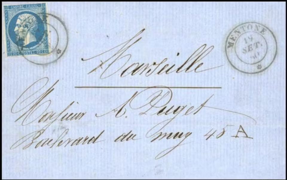 Ce déplacement de la frontière franco-italienne donna naturellement sans retard une nouvelle orientation à l’évolution politique de la Principauté. Jusque là enclavée dans les Etats Sardes, elle devint enclave dans l’Empire Français. Les Monégasques et le journal l’Eden saluèrent avec enthousiasme la nouvelle puissance protectrice et, par un traité signé le 9 février 1861, le prince Charles III régla avec le gouvernement impérial toutes les questions intéressant les deux pays et leurs relations administratives. Toutefois il n’était pas question de service postal dans ce traité. C’est donc au fond sans aucune base juridique, tout simplement par suite logique de la nouvelle situation, que les postes françaises s’installèrent à Monaco pour remplacer celles des Etats Sardes. Ainsi le bureau de Monaco qui, dirigé par un certain M. Ugo, vendait jusque là les vignettes sardes, fut placé sous la direction de M. Michelis et commença à employer les timbres-poste à l’effigie de l’empereur.